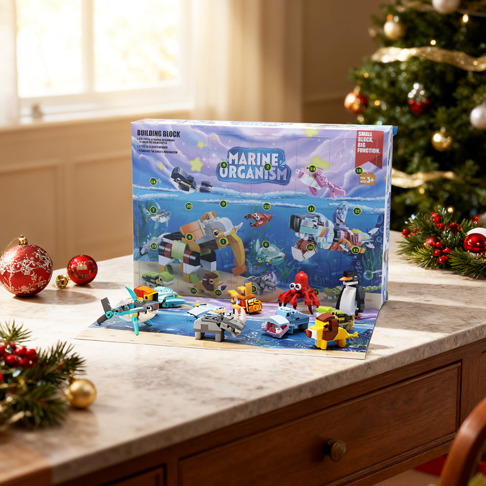 Kids Christmas Advent Calendar with Marine Animal Building Blocks and STEM Fun